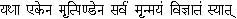 Now, as every word-symbol, intended to express the inexpressible Sphota, will so particularise it that it will no longer be the Sphota, that symbol which particularises it the least and at the same time most approximately expresses its nature, will be the truest symbol thereof; and this is the Om, and the Om only; because these three letters (A.U.M.), pronounced in combination as Om, may well be the generalised symbol of all possible sounds. The letter A is the least differentiated of all sounds, therefore Krishna says in the Gita — "I am A among the letters". Again, all articulate sounds are produced in the space within the mouth beginning with the root of the tongue and ending in the lips — the throat sound is A, and M is the last lip sound, and the U exactly represents the rolling forward of the impulse which begins at the root of the tongue till it ends in the lips. If properly pronounced, this Om will represent the whole phenomenon of sound-production, and no other word can do this; and this, therefore, is the fittest symbol of the Sphota, which is the real meaning of the Om. And as the symbol can never be separated from the thing signified, the Om and the Sphota are one. And as the Sphota, being the finer side of the manifested universe, is nearer to God and is indeed that first manifestation of divine wisdom this Om is truly symbolic of God. Again, just as the "One only" Brahman, the Akhanda-Sachchidânanda, the undivided Existence-Knowledge-Bliss, can be conceived by imperfect human souls only from particular standpoints and associated with particular qualities, so this universe, His body, has also to be thought of along the line of the thinker's mind.