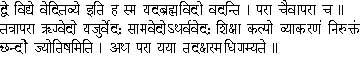 — "The knowers of the Brahman declare that there are two kinds of knowledge worthy to be known, namely, the Higher (Parâ) and the lower (Aparâ). Of these the lower (knowledge) consists of the Rig-Veda, the Yajur-Veda, the Sâma-Veda, the Atharva-Veda, the Shikshâ (or the science dealing with pronunciation and accent), the Kalpa (or the sacrificial liturgy), grammar, the Nirukta (or the science dealing with etymology and the meaning of words), prosody, and astronomy; and the higher (knowledge) is that by which that Unchangeable is known."