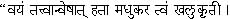 — "We are undone by our vain quest after reality; while, O bee, you are indeed blessed with success!" He then asked the disciple to send these words to Nag Mahashaya. Afterwards, finding it rather inconvenient to talk to the disciple in the crowd, he called him and Swami Turiyananda to a small room to the west and, addressing himself to the disciple, began to recite these words from the Vivekachudâmani (43):