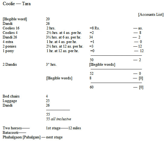 P.S. Keep this Dandi till I come and pay the coolies (2) 4 Rs., 2 annas each.