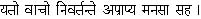 — "There the eye cannot go, nor can speech reach". There are various sentences which declare the utter helplessness of the senses, but they did not stop there; they fell back upon the internal nature of man, they went to get the answer from their own soul, they became introspective; they gave up external nature as a failure, as nothing could be done there, as no hope, no answer could be found; they discovered that dull, dead matter would not give them truth, and they fell back upon the shining soul of man, and there the answer was found.
